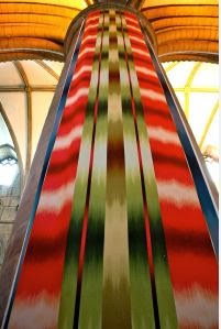 Jane's work has the same sort of perspective as that of Ptolemy Mann in her digital print which was hung the length of a pillar at Gloucester Cathedral in 2012. Although it is not dependent on the light in the same way as before it would inevitably react and alter as the light changes.